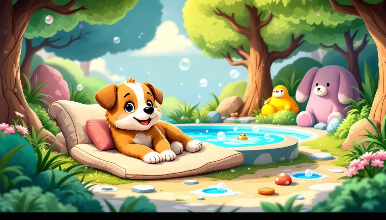 Obraz przedstawiający psa w relaksującym otoczeniu spa, co sugeruje temat no spa dla psa.